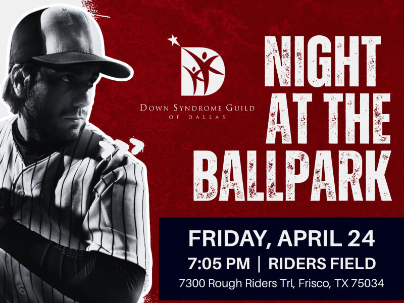 In honor of the 2026 Dallas Buddy Walk® this October, DSG families and supporters are invited to join us for a night at the ballpark. Families can get a sneak peek of our Buddy Walk® venue while watching the Frisco Rough Riders take on the Tulsa Drillers. Representatives from the Down Syndrome Guild will be throwing out the ceremonial first pitch, and families are invited to stay for the postgame fireworks show.