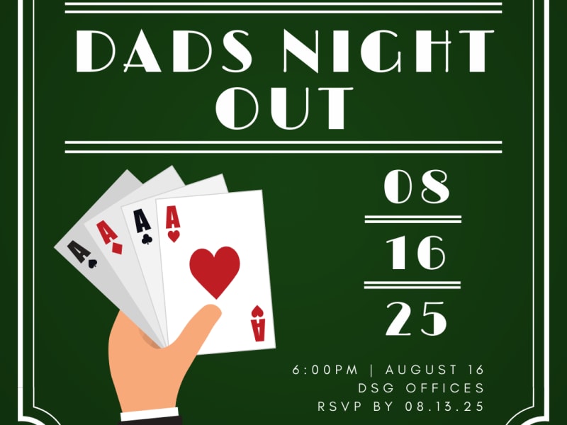 Ready for a night of cards, connection, and camaraderie? Join us for Poker Night at the DSG Offices — a laid-back evening just for dads.