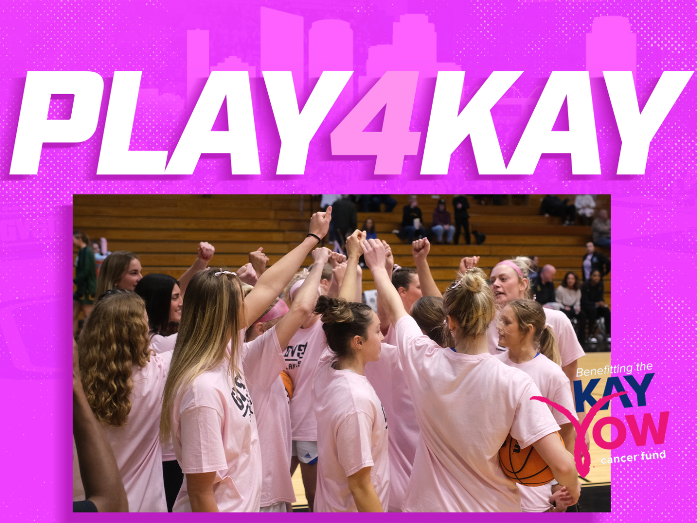 GVSU Women’s Basketball is proud to continue its ongoing support of the Play4Kay initiative, honoring the fight against cancers affecting women. Over the past several seasons, our program has participated in Play4Kay efforts to raise awareness and show support—and this year, we’re taking the next step by actively fundraising with a goal of donating $1,000 to the Kay Yow Cancer Fund.