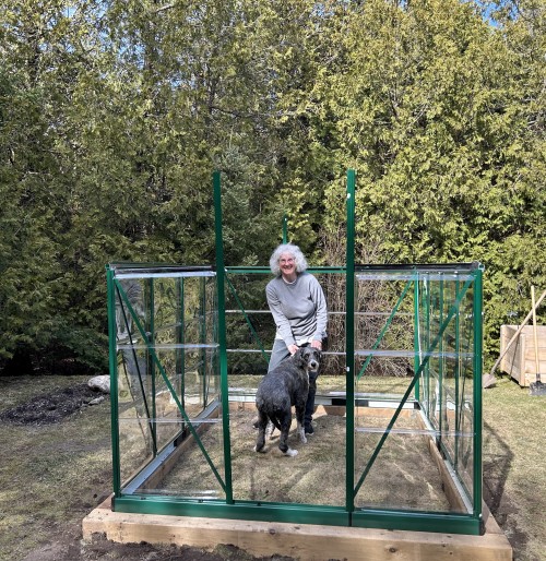 Long tiring and fun day getting the greenhouse started. A lot of incredible help from friends, including four legged Grace.