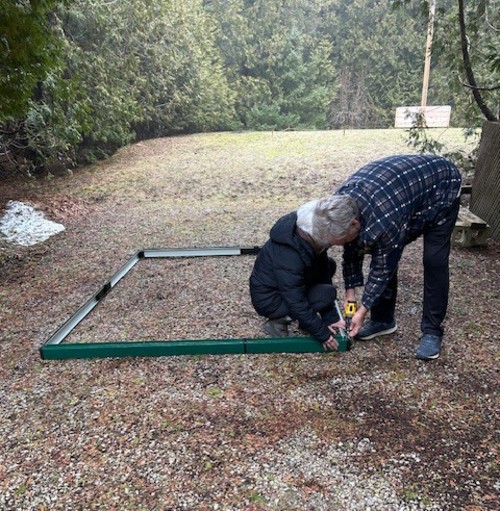Sorting materials, organizing parts and initial base assembly for my new greenhouse with amazing help from awesome neighbours.