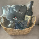 #76 - The Axe Trap Basket (Axe Trap Hat, Wine Decanter, Bottle of Wine, $150.00 Gift Card to The Axe Trap) - Value $ 215.00