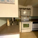 Oversized one-bedroom apartment, full kitchen, private patio, living room, one bath, steps from the sand.