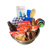 Get ready to whip up something sweet with this Baker’s Delight Gift Set! Perfect for the home baker, this basket includes everything you need to make delicious treats with ease. Enjoy a selection of Betty Crocker cookie mixes — Chocolate Chip, Snickerdoodle, and Peanut Butter — and brownie mixes - along with Hershey’s chocolate and caramel toppings to add that extra touch of indulgence.