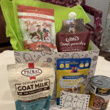 Gift Basket includes Salmon & Carrot Treats, Bone Broth Pouch, Dehydrated Goat Milk Treats, Freeze Dried Treats, Bone Broth Can Food, Dental Brush Stick and a Gift Card
