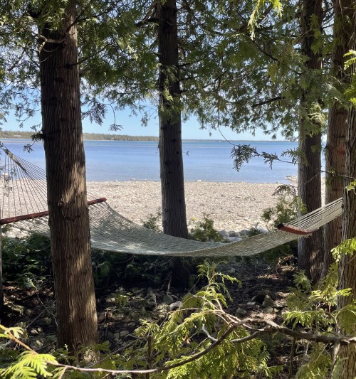 20 minute bike ride and then lots of stone sweeping, brush cleanup and setting up of the outdoor spaces. Time to relax in the hammock! Tip of the hat to Doug and Carl and all those fiercely standing up to HNC.