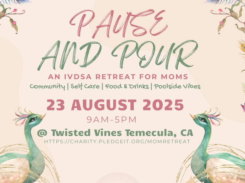 Take a well-deserved pause and pour back into yourself during this special one-day retreat designed just for IVDSA moms. Nestled at the beautiful Twisted Vines—a serene peacock sanctuary in Temecula—this day is all about recharging, reconnecting, and rediscovering self-care.