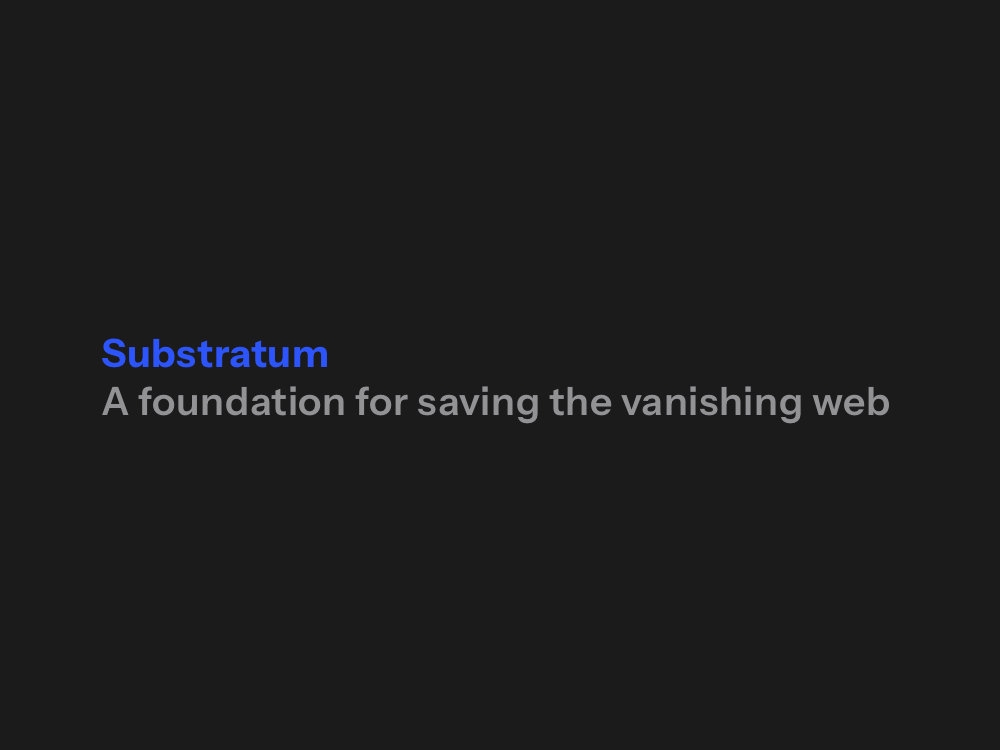 Your donation helps support our mission to save the vanishing web. Every contribution enables us to preserve at-risk websites, maintaining their domains, converting them into sustainable static websites, and hosting them in perpetuity. Each contribution helps ensure that important online resources remain accessible long after projects end or organizations sunset. When you donate to Substratum, you’re building a permanent foundation for our shared digital heritage.